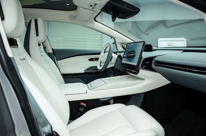外观方面,新车采用封闭式的前脸设计,前大灯组造型采用了异形设计。作为一款 GT 车型,Hyper GT 采用了超级跑车上才会有的旋翼门设计,并且是无边框设计的电吸门。此外,新车前包围中央配备了可电动开启的通风盖板,在一定车速下进行开合操作,降低车辆的风阻。